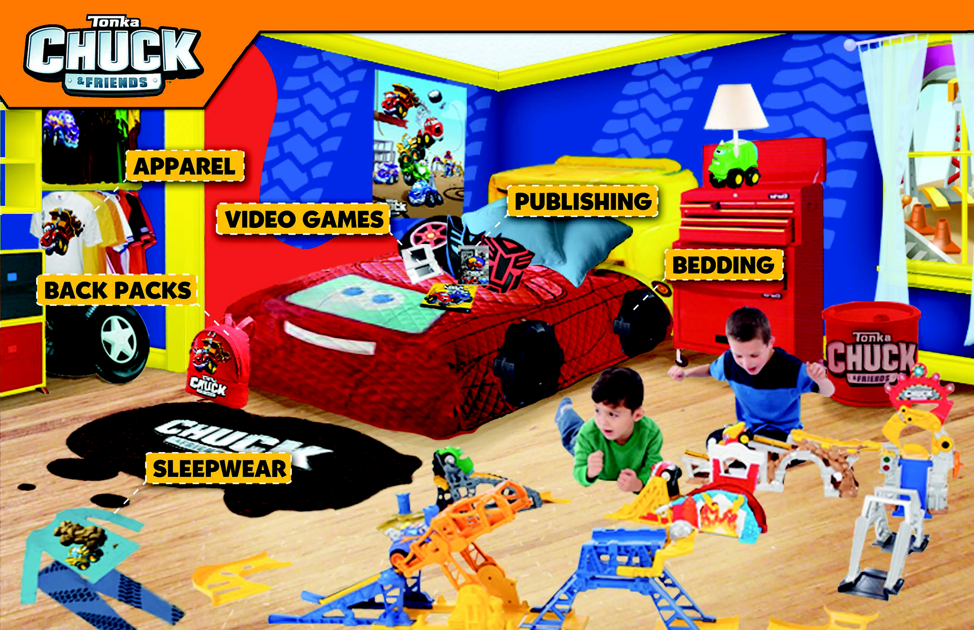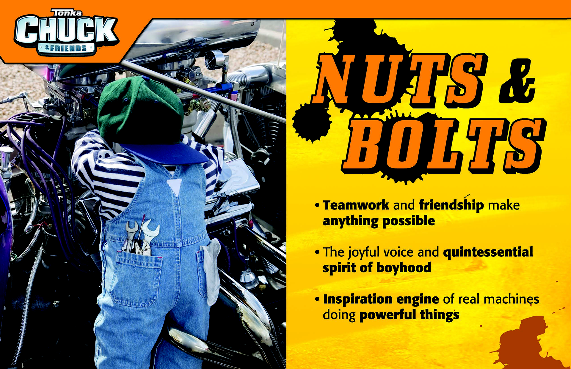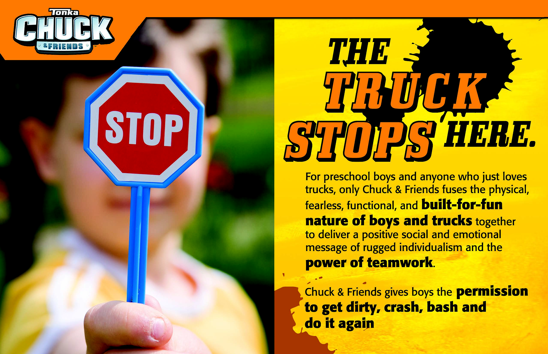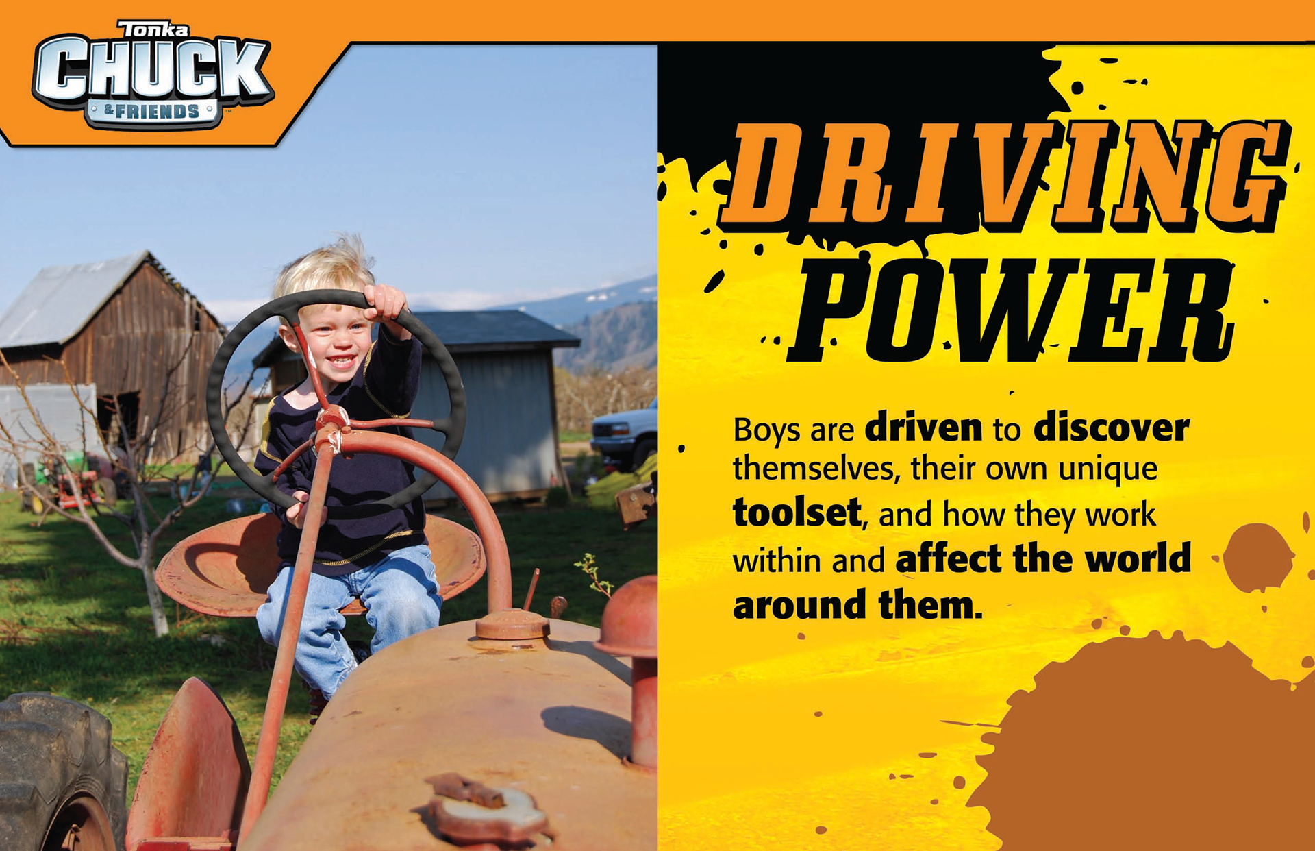 In 2010, I had the privilege of collaborating with one of my toy industry mentors, Hasbro VP Steve Drucker, to craft characters, story, world and thematic resonance for a transformative version of Hasbro's universally known Tonka brand. Adventures of Chuck & Friends went on to become an animated series on Hasbro and Discovery's The Hub Network as well as an exciting product line. This exercise in brand building emphasized a unique time in Hasbro's transformation from toy manufacturer to a brand blueprint spanning not just toys and games but entertainment, publishing, and digital.